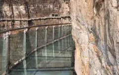 晋西南地区第一高空玻璃栈道,建于海拔700米的绝壁之上,长158.36米,与地面垂直距离达150米