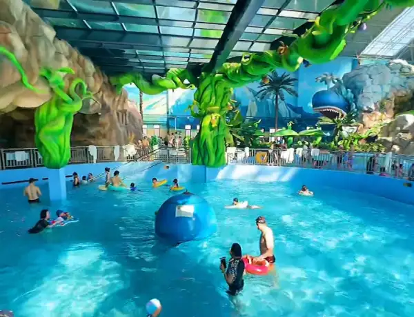 望儿山温泉水乐园位于辽宁省营口市鲅鱼圈区望儿山大街农业职业技术学院东门对面,占地面积7000平方米,虽说主要元素以温泉为主,还有好多娱乐性的水池,这里感觉最大的特点就是不仅能满足大人的娱乐休闲需求,孩子来这里一定会撒欢的喜欢,尤其是那几个潮汐环流河、儿童水寨、家庭组合滑梯,保证孩子玩得不愿离开。望儿山温泉项目包括室内外温泉疗养、温泉水娱
