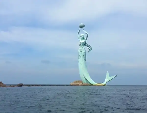 鲅鱼公主雕塑位于辽宁省营口市鲅鱼圈区经济开发区山海广场内,雕塑高达60米,犹如一位亭亭玉立的少女出浴般地浮出海面,双手高举直径达五米的海洋明珠,展示着鲅鱼圈的风采和魅力。雕塑源于鲅鱼圈的传说。悠悠海风,鲅鱼公主目光温柔而坚定,无论潮涨潮落依然眺望远方。地址:营口市鲅鱼圈区观海堤东南侧约100米门票:无需门票开放时间:全天交通参考路线:从营口客