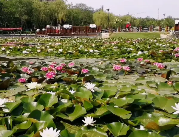 月亮湖公园位于辽宁省营口市鲅鱼圈区辽东湾大街南段,占地面积95.8万平方米,其中水域41.5