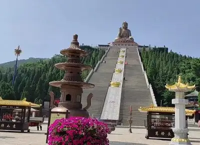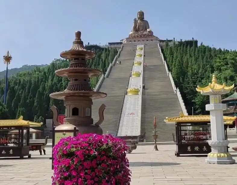 南山大佛为锡青铜铸南山大佛释迦牟尼坐像,高38.66米,重380吨,由232块铜板和108块莲
