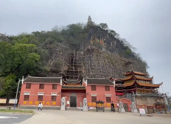 豸山寺位于东河与西河汇合成形成沱江的边上,它嵌于山体中逐渐向上的建筑特点让让你会立即产生了浓厚的兴趣。从豸山古寺大门进入,可见寺门左则石碑上刻有许多碑文。拾级而上,所有建筑依山势递上而建构,又连为一体,一至五层楼阁刚好将豸山岩西面山岩全部建满,如镶嵌一般,天衣无缝,又融儒、道、佛教建筑艺术于一体,实属罕见。这种将寺庙嵌于山体之内,被形象地