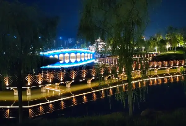 人民公园内杨柳依依,青石画桥。放眼四周,彩蝶翻飞,翠木葱郁,芳草碧连天,倒也养眼清目。湖对岸,一滩繁花似锦,长在在湖畔,边有石桥几座,相映如画。
