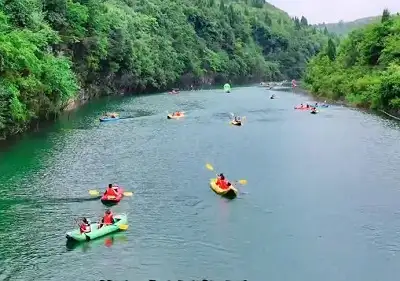 梭米河漂流现已开发特色自助漂,全程八公里,从起漂点梭米孔村顺流而下至终漂点云门囤景区牛角塘,用时三小时左右。上游三公里河水清澈、景色绝美,悠然漂逸;下游五公里峡谷俊美、水流湍急,激情四溅;让游客体验一种&