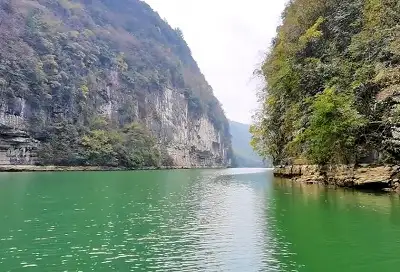 标志性景点为天门洞:两江交汇,山石为开,碧水想连。天门洞跨度约50米,距水面高度约50米,水深30余