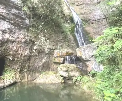 三层崖位于湄潭县抄乐镇境内,距县城30公里,占地50平方公里。地质结构为寒武系地层。这一带为富硒地区。沙塘河清澈碧蓝,河床及沿岸一带山泉密布,因此又称百泉河谷。矿泉经国家权威部门鉴定为国内质量最优秀富硒、富锶的矿泉之一,具有极高的保健、疗养之价值。