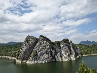大罗山盘谷湖位于浙江省温州市瓯海区工业新区卧龙路大罗山景区内,因为天柱寺的地形像盘