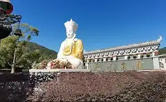 如意谷以打造旅游休闲景观为主,搭配适度的具有禅意的园雕。种植观赏植物,搭配游步道及休憩广场,营造林荫休闲活动场所;西侧建设山涧溪流区,造有菩提泉、指月泉、洗心泉、明心泉,各潭之间以本地鹅卵石、块石铺设,形成流水潺潺的自然溪涧,小蛇山前方建侍者公庙,山上从低到高建有铜钵台、佛手印、如意阁,以林萌生态游步道交融贯通到文化园北向后山。给千